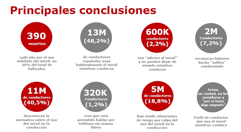 Francisco Valencia, director general de la Fundación Línea Directa, señaló durante la presentación del informe que se estima que un 20% de los fallecidos en accidentes de tráfico tienen detrás una distracción provocada por el uso del móvil. Esto supone alrededor de 390 fallecidos al año. Valencia recordó que ya el director general de la DGT en sus últimas comparecencias hablaba del uso del móvil como la primera causa de los accidentes en nuestro país. "Línea Directa ha querido poner números a estas estimaciones".