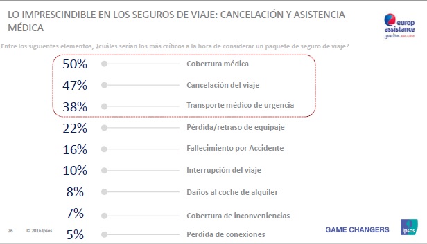 Según el 16º Estudio Vacacional Ipsos - Europ Assistance, los españoles somos de los europeos menos concienciados de la necesidad de contratar seguros de Viaje. Un 31% no contrata ningún tipo de cobertura e incluso un 25% piensa que no corre ningún tipo de riesgo en los viajes. Además, en los viajes locales, las coberturas sanitarias que ofrece la Seguridad Social hacen pensar a los clientes que ya son suficientes. De todos modos, “poco a poco esta tendencia empieza a corregirse”, apuntó Pilar Nieto, directora comercial Travel de la compañía.