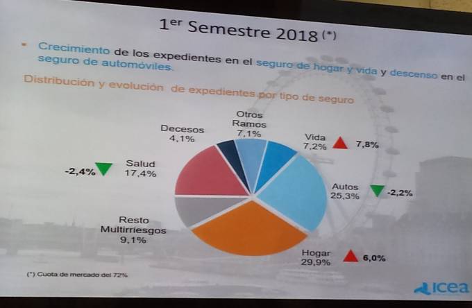 Por tipos de seguro, se observa un crecimiento de los expedientes de Hogar, que sube un 6% y suponen el 29,9% de los expedientes abiertos, y en Vida que suben un 7,8% y suponen el 7,2% de los expedientes. En el extremo contrario, los expedientes abiertos en Salud y Autos descienden un 2,4% y un 2,2% respectivamente.