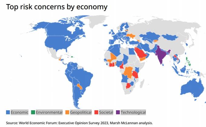 Además, la encuesta de este año también revela una creciente preocupación por los riesgos tecnológicos, incluidos los efectos adversos de la inteligencia artificial y la desinformación. Estos riesgos se mencionan seis veces en el top cinco del ranking por países de este año, frente a solo tres apariciones en 2023. Figura como el riesgo número uno para la actividad empresarial en Indonesia, el número tres en EE. UU. y el número cuatro en el Reino Unido.