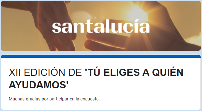 Santalucía ya conoce el nombre de los ganadores de la XII edición de su programa 'Tú eliges a quién ayudamos', cuyo objetivo es que los empleados y clientes del Grupo decidan los proyectos sociales a los que la compañía va a destinar sus fondos de acción social.