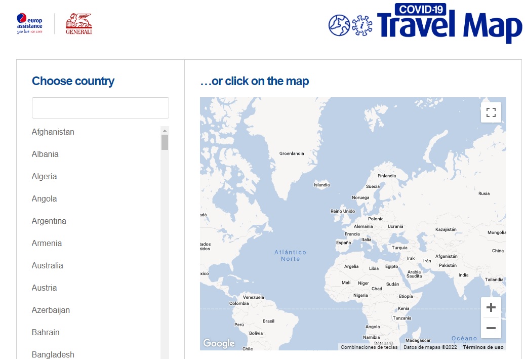 Europ Assistance ha creado un mapa interactivo con información sobre el Covid-19 en cada país y las restricciones de viaje en todo el mundo con el objetivo de ayudar a las personas a planificar con confianza sus viajes y vacaciones facilitando información en tiempo real.