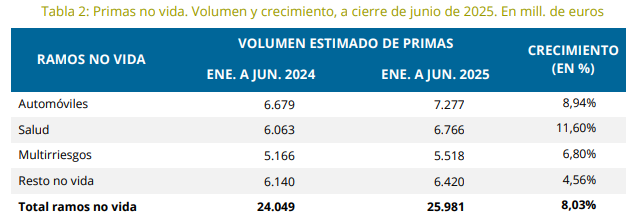 Y el volumen total de primas obtenido por el seguro español se completa con los casi 19.500 millones recabados en el segmento de Vida, que crece un 18,22% y es el responsable principal de que la recaudación conjunta se está disparando a estos niveles en 2025.