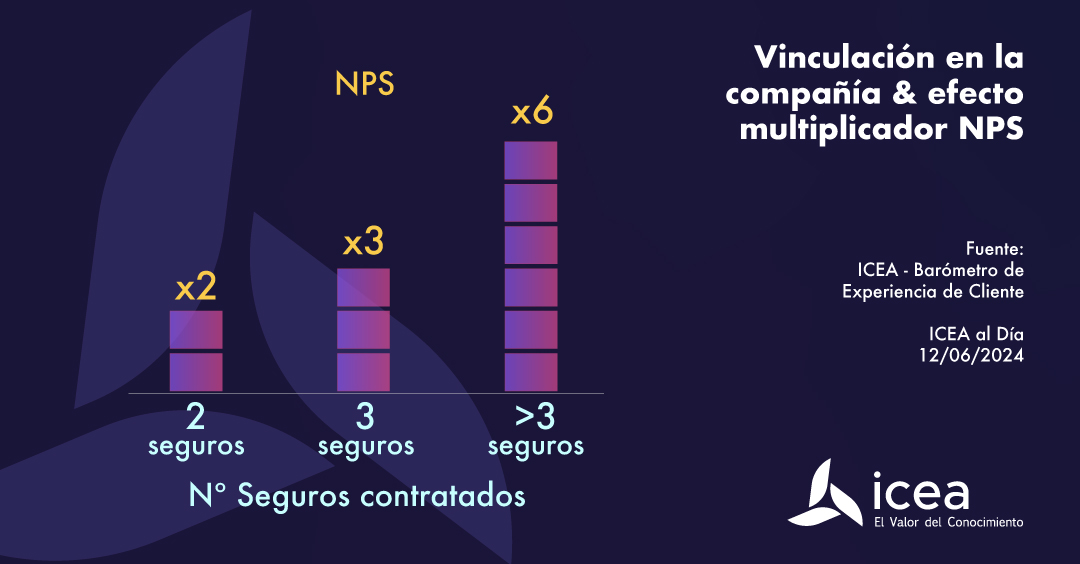 De hecho, se constata una vinculación directa. Se ha detectado que, por ejemplo, los clientes que tienen 2 seguros contratados con una compañía, multiplica por 2 el NPS (Net Promoter Score), índice que mide la lealtad de los clientes basándose en las recomendaciones. Y si tiene 3 pólizas contratadas, el NPS se triplica; pero si tiene más de 3, se multiplica por 6.