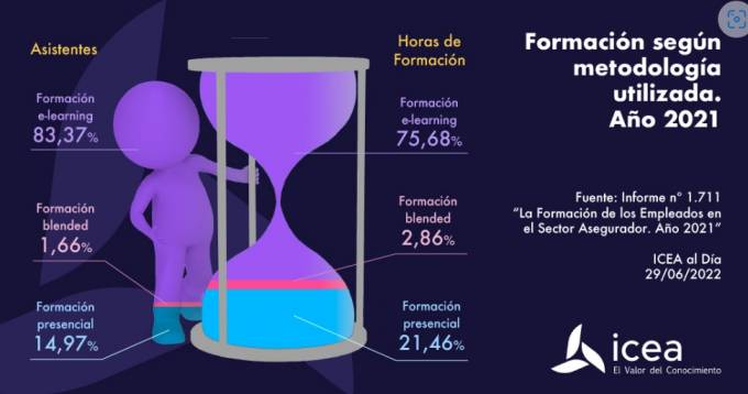 El 83,37% del personal del sector asegurador ha accedido a algún tipo de formación online durante 2021. Esto supone además que el 75,68% de las horas de formación impartidas han sido bajo esta modalidad, según datos facilitados por ICEA.