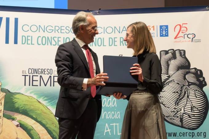 Los galardones se entregaron durante la sesión inaugural del VII Congreso Nacional del Consejo Español de RCP, celebrado en A Coruña. María Tormo, directora de Planificación y Desarrollo de Asisa, recogió el reconocimiento de manos del director de la Fundación Pública Urgencias Sanitarias 061 de Galicia, Román Gómez.