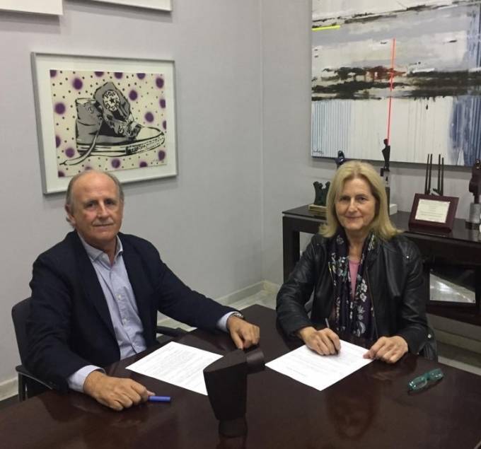 Rosa Laparra, gerente de la Fundación Divina Pastora, y Luis Miralles, presidente de Casa Caridad, renuevan su convenio de colaboración por cuarto año consecutivo como 'Empresa con Valor'.
