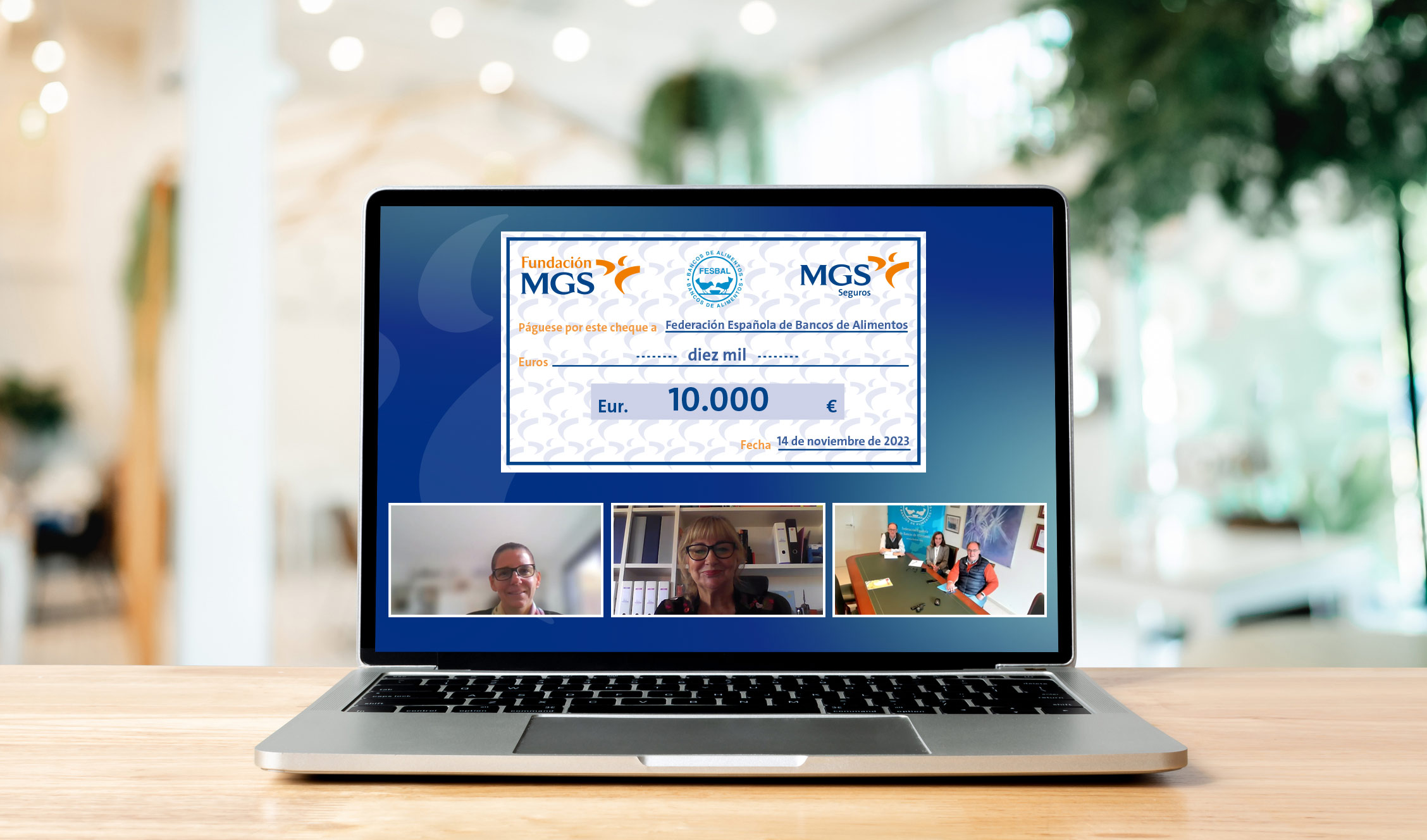 Fundación MGS ha donado los 10.000 euros recaudados en su campaña anual de apoyo a la Federación Española de Bancos de Alimentos. El acto formal de entrega, realizado a través de videoconferencia, contó con miembros del Patronato de la Fundación MGS, encabezado por Araceli Ruiz, en su calidad de vicepresidenta, y de la Fesbal, en cuya representación acudió Pedro Castaños, subdirector del Gabinete Técnico, entre otros asistentes