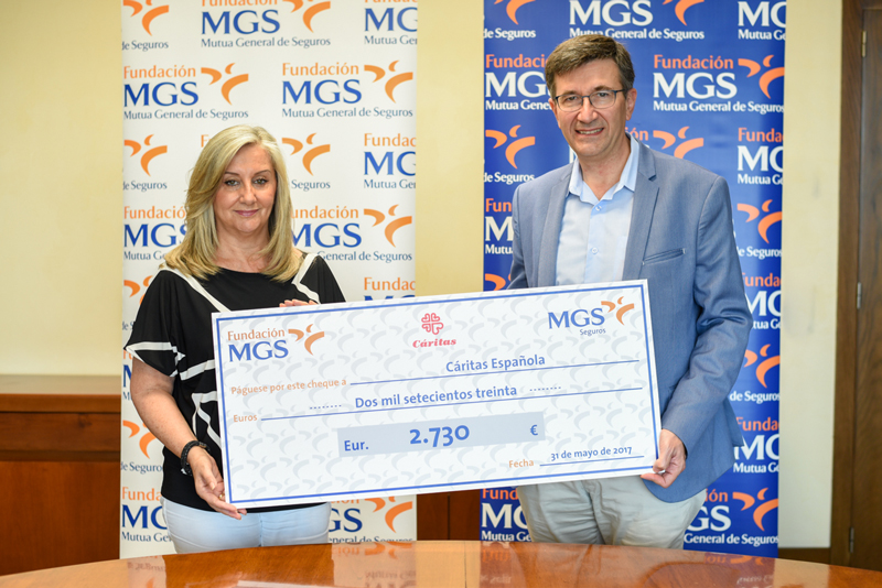 La Fundación MGS entregó las donaciones efectuadas por el personal y colaboradores de MGS Seguros en favor de Cáritas Española a través de la iniciativa Euro Solidario que consistía en donar 1 euro al mes para organizaciones sin ánimo de lucro.