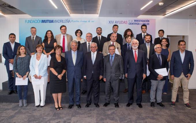 Fundación Mutua Madrileña entregó ayer su XIV Convocatoria Anual de Ayudas a la Investigación en materia de Salud. Las ayudas suponen un total de 1,7 millones de euros que se destinarán a apoyar 18 estudios clínicos dirigidos a la mejora de tratamientos médicos que se desarrollarán en diferentes centros de investigación de toda España. El consejero de Sanidad de la Comunidad de Madrid, Jesús Sánchez, la directora general de Salud Pública, Calidad e Innovación del Ministerio de Sanidad, Servicios Sociales e Igualdad, Elena Andradas, el presidente de Grupo Mutua Madrileña y su fundación, Ignacio Garralda, y el presidente del Comité Científico de Fundación Mutua Madrileña, Rafael Matesanz, entregaron el reconocimiento a los investigadores.