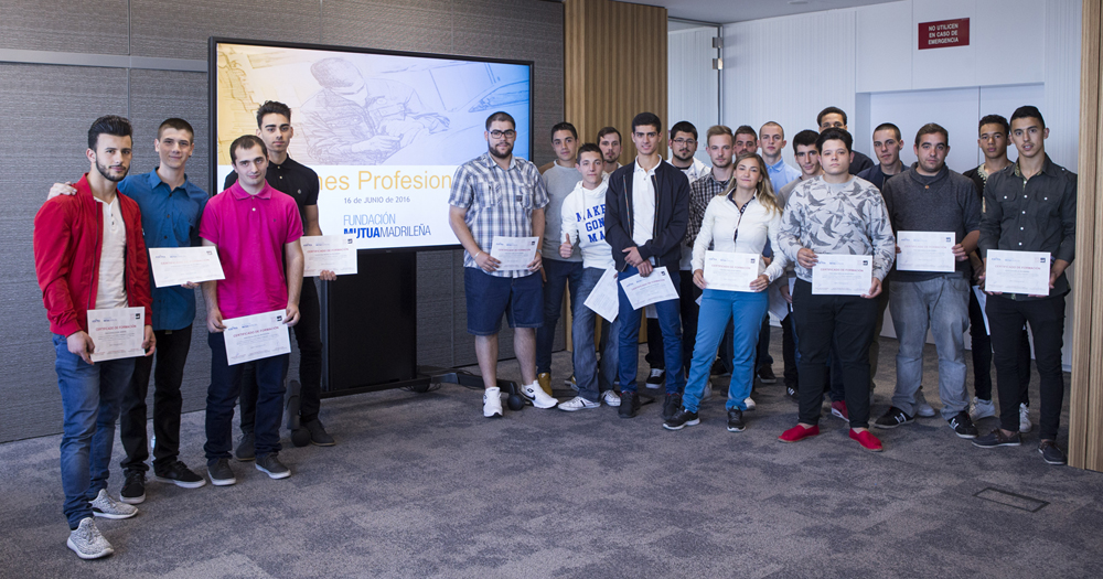 Fundación Mutua Madrileña, Asetra y Fundación EXIT han entregado los diplomas a los participantes de la edición 2015-2016 del programa ‘Jóvenes Profesionales’ en un acto presidido por Belén García, gerente de la Agencia para el Empleo de Madrid. En esta 5ª convocatoria del programa han participado 22 alumnos, 10 de los cuales han cursado el primer curso de FP ‘rama carrocería’, mientras que otros 12 han realizado su 2º año de prácticas y completado el ciclo formativo de FP de grado medio, con un total de 400 y 600 horas respectivamente de aprendizaje en talleres.