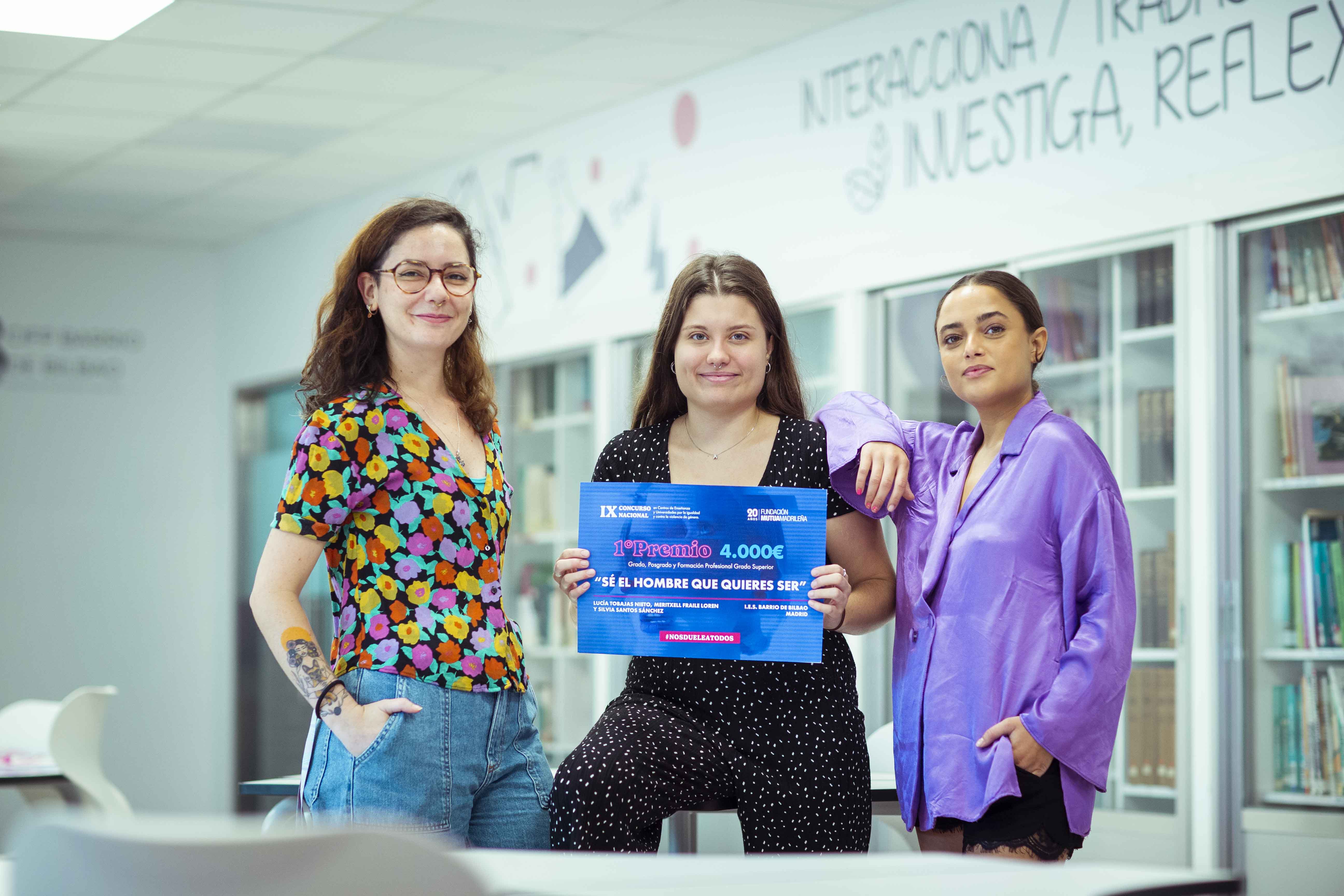 Por su parte, otro vídeo, "Sé el hombre que quieres ser", de Lucía Tobajas, Meritxell Fraile y Silvia Santos, tres alumnas del Grado de FP Superior de Igualdad de Género del IES Bilbao de Madrid, ha recibido el primer premio en la categoría de enseñanzas superiores (Grado, Posgrado y Formación Profesional Grado Superior). "Con el video quisimos dirigirnos a los hombres, siendo firmes en nuestro mensaje, pero asertivas al mismo tiempo y enseñando el dolor que el machismo causa también en ellos", explica Lucía Tobajas.