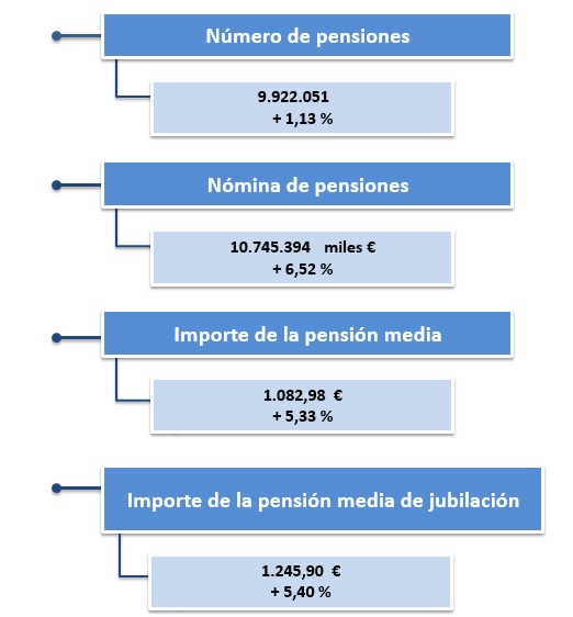 A 1 de enero, la nómina mensual de las prestaciones contributivas ascendió a 10.745,39 millones de euros, mes en el que ya se ha incluido la revalorización del 2,5% al vincular la subida al IPC, tal y como se acordó con los agentes sociales a finales de año