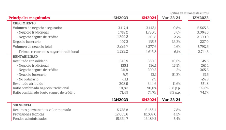 Por líneas de negocio, su parte tradicional sostenida bajo la firma Occident y por ahora también NorteHispana, registró un crecimiento en primas del 3,6% hasta los 1.780 millones. El beneficio de este segmento se elevó al cierre de junio hasta los 156,1 millones, un 15,5% más que un año antes. Destaca el grupo que esta mejora se basa en una rebaja del ratio combinado en 1,8 puntos hasta dejarlo en el 90% en la comparación con el primer semestre de 2023. La mejora, sostiene, se basa fundamentalmente en el buen comportamiento del ramo de Multirriesgos. En la facturación por ramos, precisamente Multirriesgos avanzó un 6.4%, Autos un 8,9% y Diversos un 8,3.