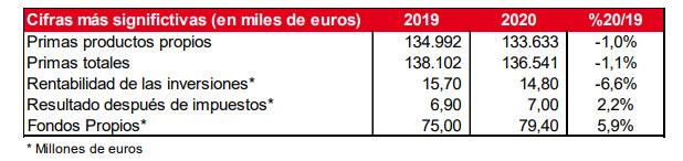 La entidad también ha comunicado que el ratio de gastos sobre las primas se ha contenido un 0,2% y los fondos propios al cierre del ejercicio ascienden a 79,4 millones, lo que indica un crecimiento de cerca del 6%.