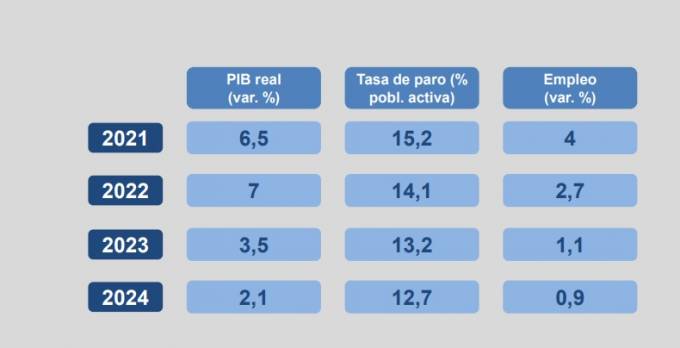En cuanto a la tasa de paro esperan reducirla hasta el 15,2% de media en 2021 y un 14,1% en 2022.
