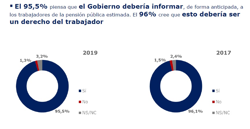 Inverco se apoya en los datos extraídos de su II Estudio sobre la jubilación y la importancia del Derecho a saber para hacer llegar a los políticos que el 95% de los españoles solicita al Gobierno que informe a los ciudadanos sobre qué pensión pública recibirán cuando se jubilen. En la encuesta realizada por la Asociación de Instituciones de Inversión Colectiva, el 91,5% de los ciudadanos confiesa que conocer esta información les ayudaría a planificar mejor su jubilación. Esto supone dos puntos más que en el primer estudio realizado en diciembre de 2017.