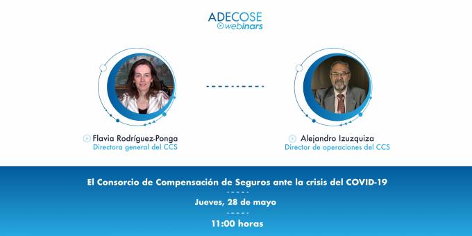 Flavia Rodríguez Ponga, directora general del CCS, y Alejandro Izuzquiza, director de operaciones del CCS, han trasladado a los socios de Adecose cómo ha trabajado el Consorcio durante la crisis el Covid-19 y sus efectos en el sector asegurador en una nueva sesión de webinar que ha sido moderada por el presidente de la asociación, Martín Navaz. A pesar de la dificultad de la situación, gracias al teletrabajo y a la teleperitación se pudieron tramitar el 30% expedientes generados por las inundaciones de abril en Castellón. A partir de la próxima semana, el CCS valora retomar las peritaciones presenciales con las necesarias cautelas.