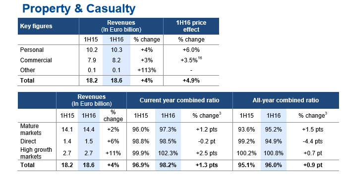 El beneficio neto de Grupo AXA en los primeros 6 meses del año ha sido un 4% mejor que en 2015 hasta totalizar 3.207 millones de euros. Este resultado se benefició de la venta de dos edificios que la entidad poseía en Nueva York que compensó los datos de los mercados de Reino Unido y portugués en Vida, además de las dificultades en los mercados, principalmente por la gran volatilidad y los tipos de cambio bajos: “El entorno sigue caracterizándose por las bajas tasas de interés y la mayor volatilidad”, comenta el CEO de la entidad, Thomas Buberl. Destaca también que en estos primeros meses del año se han incrementado los costes por catástrofes naturales y resalta que la entidad posea un ratio de Solvencia II del 197%.