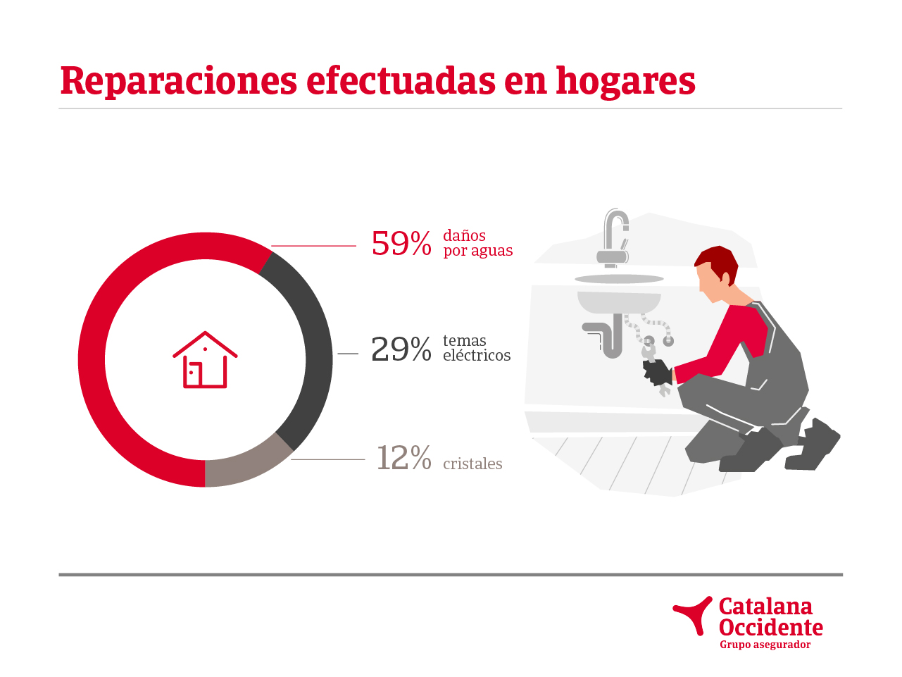 El Grupo Catalana Occidente realizó 45.685 reparaciones durante los meses de confinamiento (del 14 de marzo al 14 de mayo), un 15% menos que en el mismo periodo del año pasado. La mayoría se efectuaron en el ámbito doméstico (76%), le siguieron las actuaciones enmarcadas en los seguros de Comunidades (22%) y, en menor medida, las correspondientes a seguros de Comercio (2%).