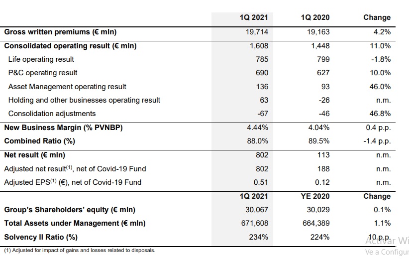 El CFO del Grupo Generali, Cristiano Borean, ha declarado: "El Grupo ha cerrado un excelente primer trimestre de 2021, con un desempeño en línea con sus objetivos y confirmando la eficacia de la estrategia Generali 2021. El Grupo se mantiene entre los más sólidos del sector asegurador con una excelente posición de capital. Asimismo, el reajuste del conjunto del negocio de Vida está bien encaminado y nos ha permitido mantener una excelente rentabilidad en el actual entorno de bajos tipos de interés. Generali sigue registrando el mejor y menos volátil ratio combinado entre sus homólogos y ha logrado resultados destacados en la gestión de activos y otros segmentos de negocio. El fuerte crecimiento del resultado operativo y del resultado neto demuestran que el Grupo sigue operando eficazmente en un contexto macroeconómico que todavía se enfrenta a la incertidumbre derivada de la pandemia".