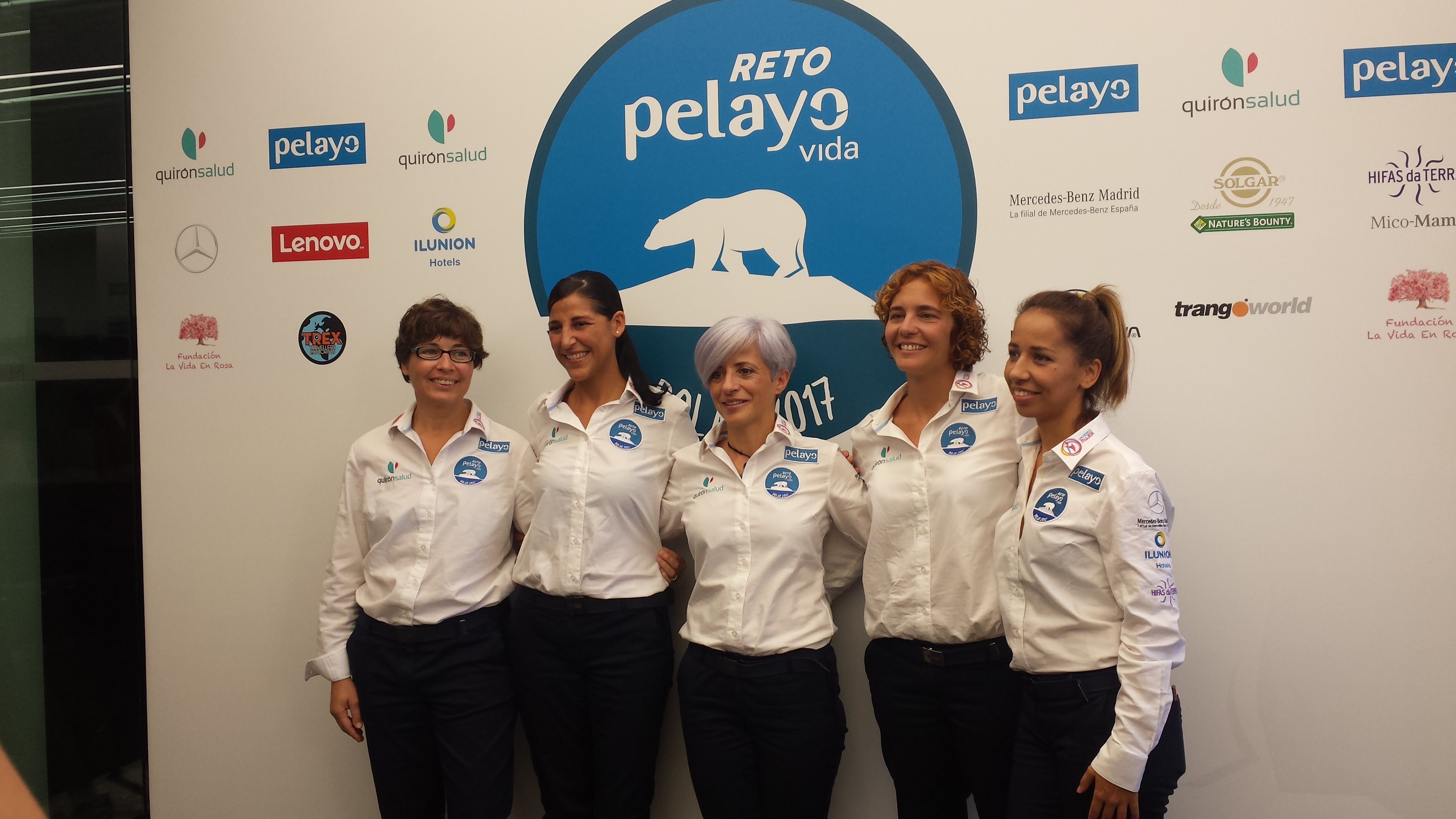 5 mujeres con edades comprendidas entre los 35 y los 51 años afrontan el III Reto Pelayo Vida. En esta edición Lorena, Micaela, Esther, Ana y Encarnación, en representación de todas aquellas mujeres que han padecido o padecen cáncer, afrontan la aventura de cruzar el Ártico en 14 días, recorriendo más de 300 Km a pie y 100 en kayak. Con caras llenas de ilusión y, por qué no decirlo, entre alguna que otra lágrima, coinciden en que el cáncer les ha cambiado la vida, y que tras "un momento en que se te cae el mundo", nos dice Lorena, portavoz del grupo, gracias al ánimo de su doctora consiguió superar sus miedos y decidirse a afrontar un reto cada año. "Ole tú" es su mensaje para todas aquellas compañeras que están pasando por un cáncer.