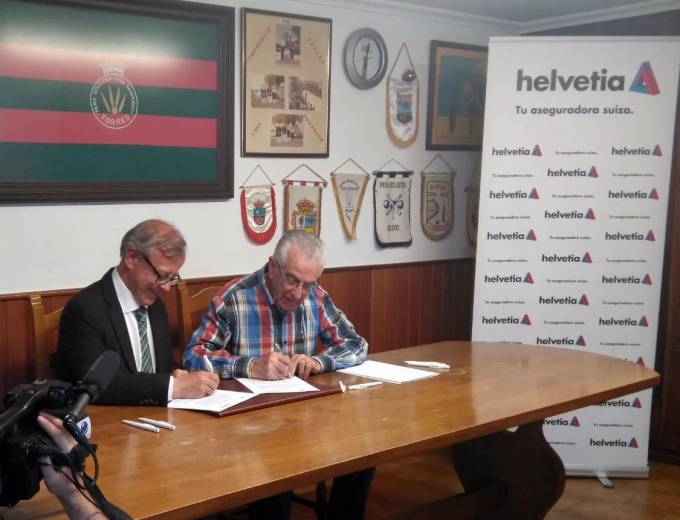 El director de Marketing y Responsabilidad Corporativa de Helvetia Seguros, Javier García, y el presidente de la peña, Manuel Oliva, han protagonizado la firma del acuerdo, que ha tenido lugar en Torres (Torrelavega). "Con este acuerdo queremos continuar contribuyendo al crecimiento de esta peña, que promueve la práctica de este deporte entre los más jóvenes y que representa valores con los que nos sentimos plenamente identificados, como el trabajo en equipo, la constancia o la superación personal", asegura Javier García.