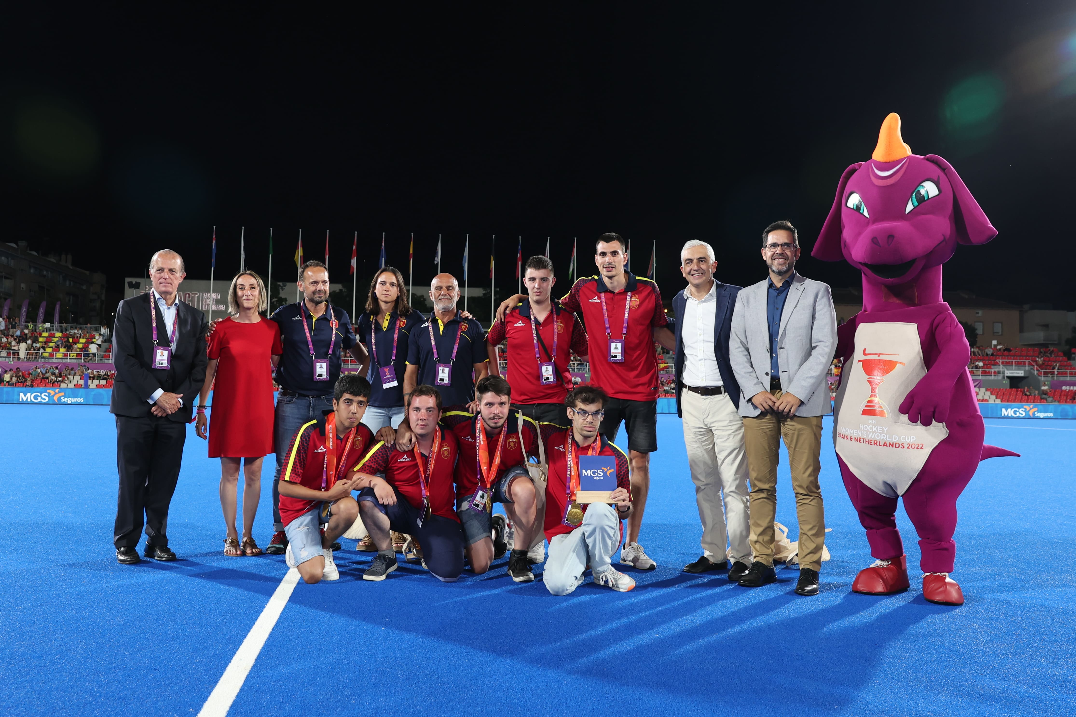El homenaje tuvo lugar durante el descanso del partido entre Corea del Sur y España, correspondiente al Mundial Femenino de Hockey en el Estadi Olímpic de Terrassa.