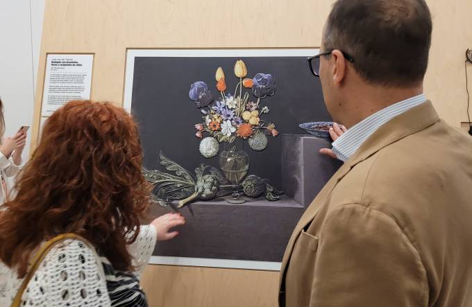 El Museo Nacional del Prado, con el apoyo de la Fundación AXA y la colaboración de la ONCE, presenta esta iniciativa a través de imágenes en relieve de obras del Prado, entre las que se encuentran La fragua de Vulcano y El quitasol, para que puedan ser recorridas y tocadas con las manos.