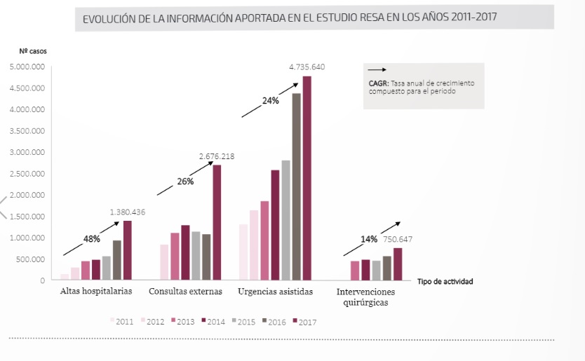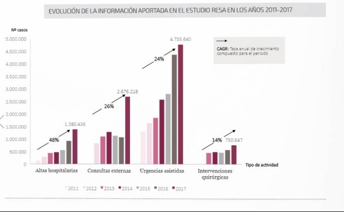 Respecto a los datos del informe, la sanidad privada acoge el 26% del total de las altas hospitalarias en España, el 15% (750.000) de las intervenciones quirúrgicas que hay en España, 4,7 millones de visitas de urgencias y 1,5 millones de estudios de diagnóstico por imagen. Este informe acoge información de 325 centros sanitarios y 186 de reproducción asistida y se analizan hasta un total de 63 indicadores.
