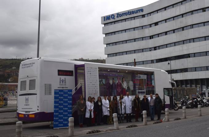 Coincidiendo con el Día Internacional de la Eliminación de la Violencia contra la Mujer, IMQ y el Instituto Vasco de la Mujer-Emakunde han celebrado una jornada de sensibilización en un autobús informativo situado en el exterior de la Clínica IMQ Zorrotzaurre, en Bilbao.