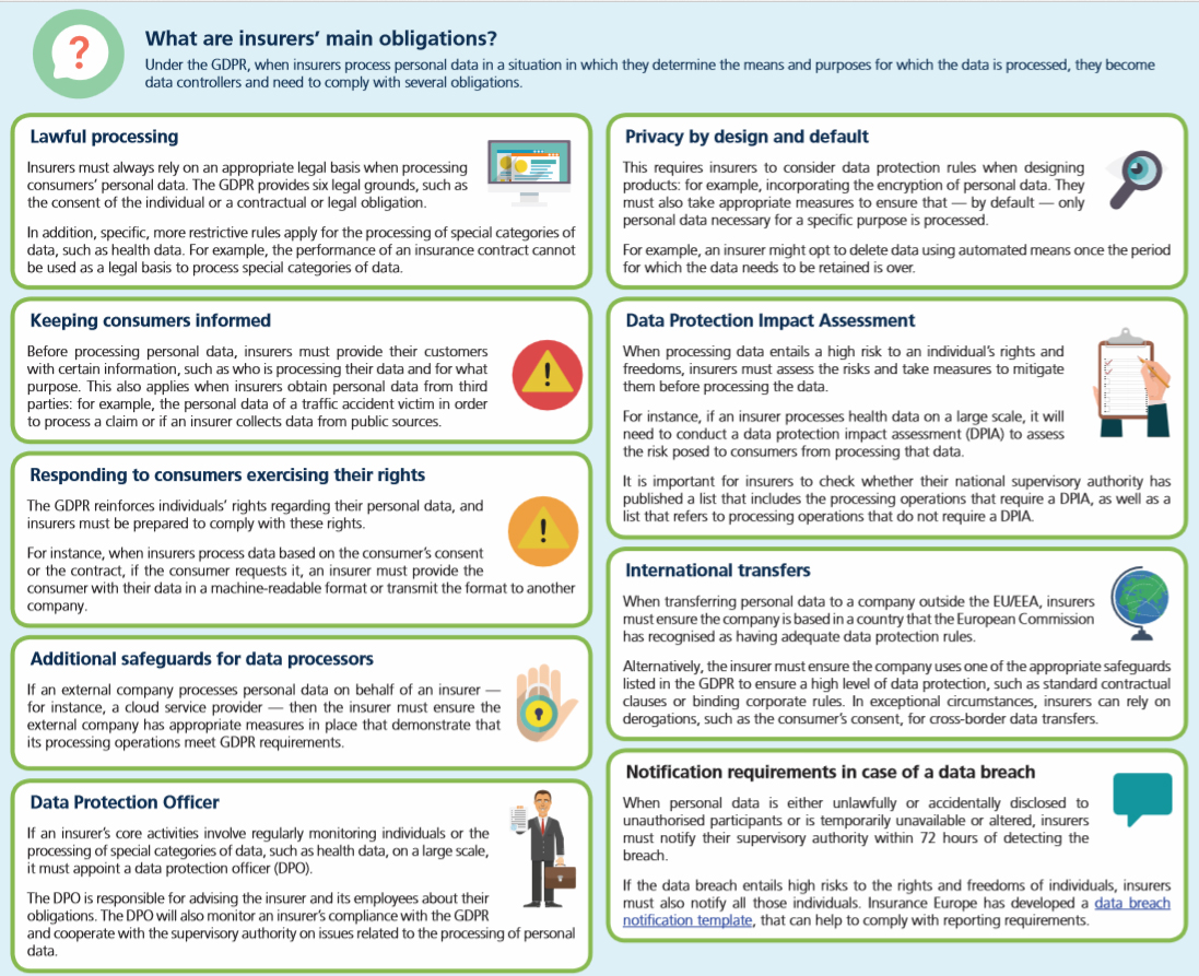 Insurance Europe describe las obligaciones de las aseguradoras en protección de datos