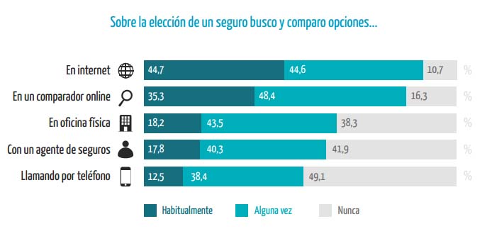 Asimismo, el 83,7% reconoce que utliza los comparadores on-line para contrastar ofertas y tomar la decisión de contratación final. El comparador considera que la “gran capacidad de recopilar, agregar y organizar la enorme cantidad de información compleja y dispersa hace de Internet una herramienta privilegiada que facilita el proceso de decisión de compra”.