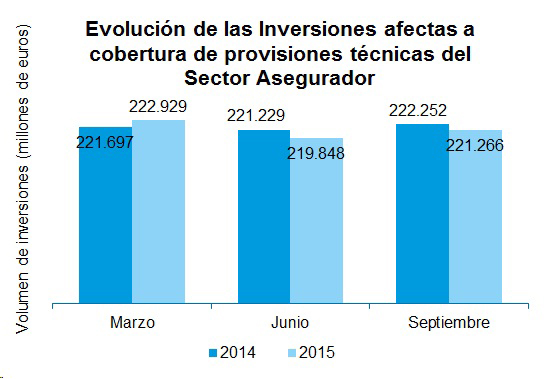 Las inversiones afectas a cobertura de provisiones técnicas del sector asegurador alcanzaron los 221.266 millones de euros a septiembre de 2015. El 80,9% de dicho volumen representó la inversión de la cartera de Vida. Renta fija es la categoría más significativa, con un 67,9% del total de la cartera.