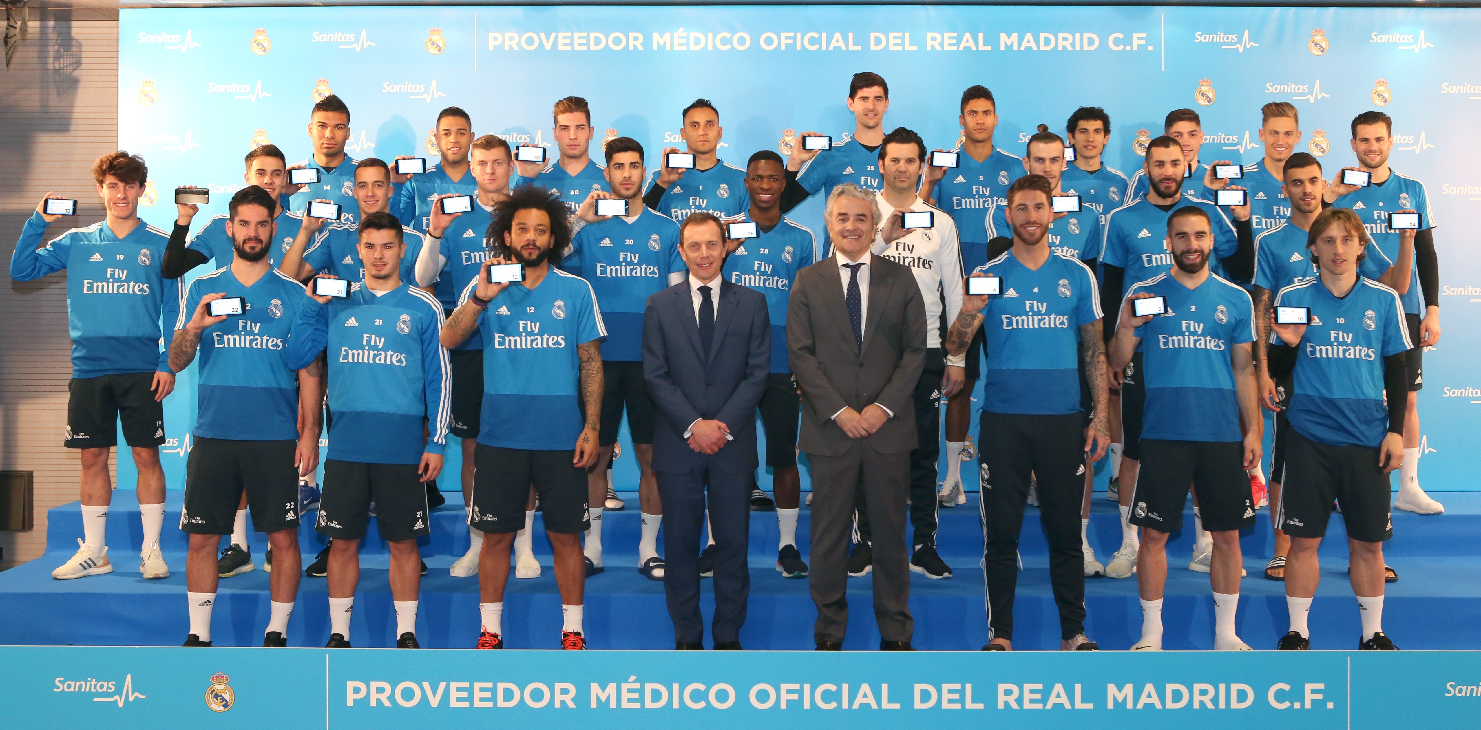 Los jugadores del Real Madrid y su entrenador, Santiago Solari, han recibido las tarjetas sanitarias digitales de Sanitas, proveedor médico oficial de la institución. Iñaki Ereño, consejero delegado de Sanitas, ha hecho entrega de estas tarjetas digitales a los integrantes del conjunto blanco: "Hoy los jugadores del Real Madrid nos tienen más cerca que nunca gracias a los servicios digitales. La digitalización permite la medicina más humana que ha existido nunca, y es esta la que queremos poner a disposición de los mejores. Competir siempre a primer nivel implica no estar nunca dispuestos a conformarse, valor que el Real Madrid y Sanitas comparten y que explica por qué hoy estamos todos aquí".