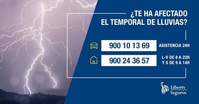 Liberty Seguros ha activado un protocolo especial para acompañar a sus clientes durante los temporales en Comunidad Valenciana y Huesca. La compañía ha puesto a disposición de los clientes que hayan podido verse afectados la línea telefónica gratuita 900 222 665 o 952 367 042, y se han publicado en las distintas redes sociales del Grupo para facilitar su difusión.