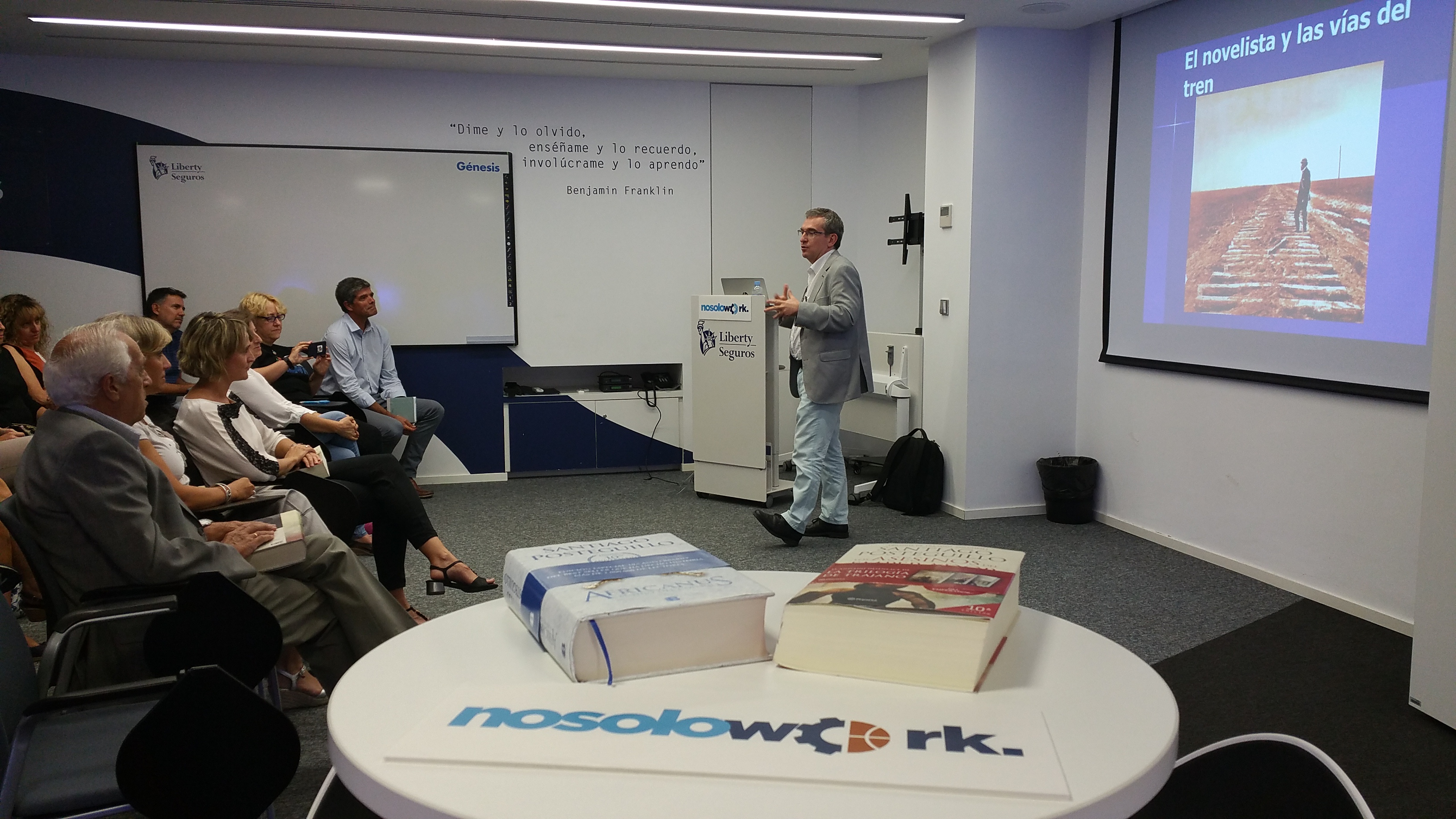 Dentro del programa NoSoloWork, Liberty Seguros ha organizado charlas culturales durante septiembre y octubre en sus sedes de Madrid, Barcelona y Bilbao. Los encuentros, a los que podían acudir empleados y sus familiares, pretendían "motivar la curiosidad literaría de quienes forman parte de la compañía".