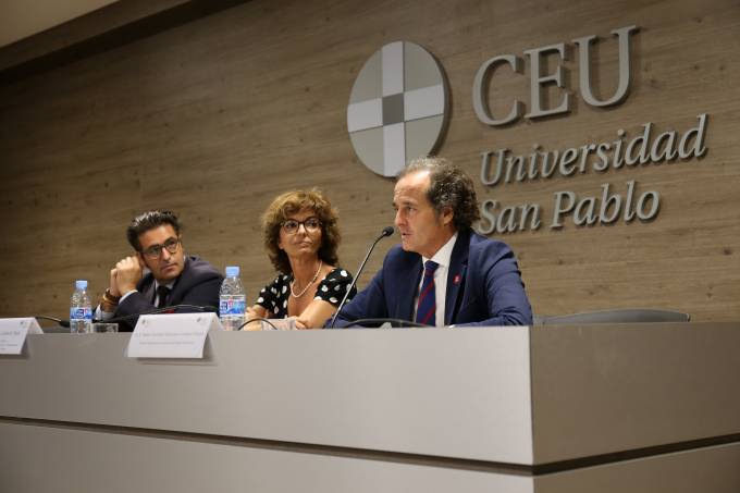 El liderazgo femenino en el ámbito empresarial ha sido objeto de una jornada de trabajo celebrada dentro de las actividades de la Cátedra de Investigación Mutua Madrileña en la Universidad CEU San Pablo. Han participado 40 profesores de 17 universidades (nacionales e internacionales), como la de Cardiff (Gales), Siena (Italia), Bentley (EEUU) y Witten-Hördecke (Alemania). A lo largo del evento intervinieron el director de RRHH de Mutua Madrileña, Rafael González-Palenzuela, el vicerrector de Profesorado e Investigación de la Universidad CEU San Pablo, Agustín Probanza, y la decana de la Facultad de Ciencias Económicas y Empresariales de la citada universidad, Carmen Calderón.