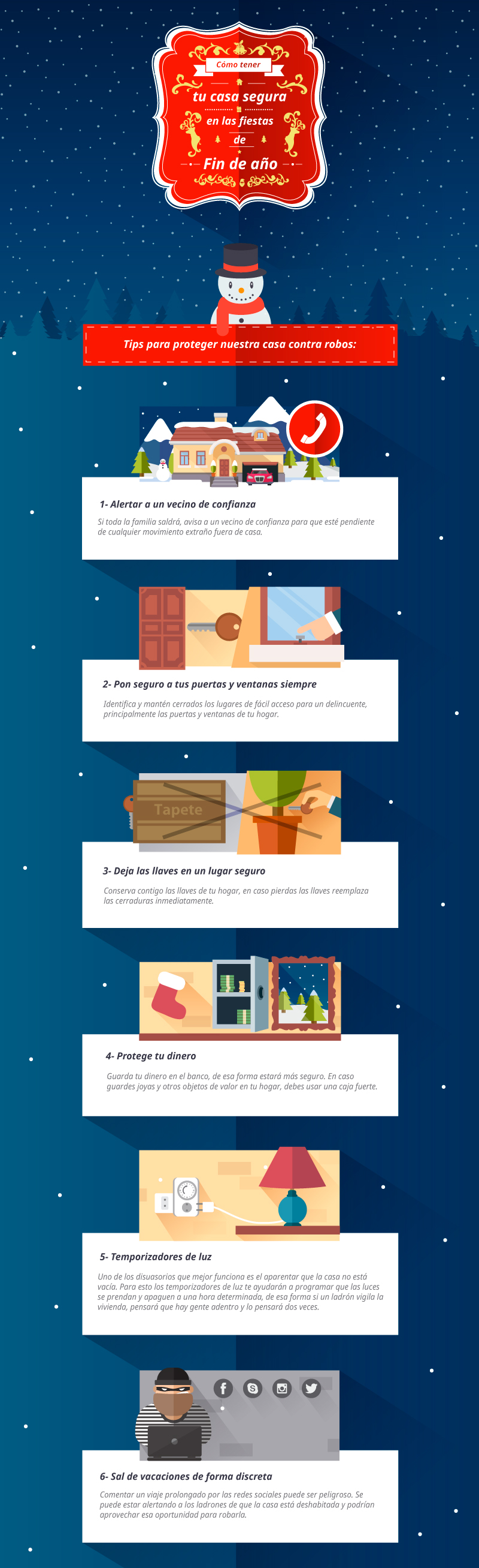 2.- En caso de salir de viaje, es recomendable avisar a algún familiar o vecino para que esté alerta ante cualquier situación extraña que pueda observar en nuestra casa.