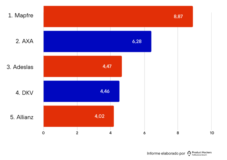 Junto a las dos compañías mencionadas, aparece en el ranking SegurCaixa Adeslas (4,47%), DKV Seguros (4,46%) y Allianz (4,02%).