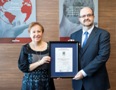 Mayte Matiacci, directora general adjunta de Prestaciones y Proveedores de Mapfre España, junto con los directores de las áreas correspondientes, recibió este reconocimiento del director de Certificación de Aenor, Manuel Romero.