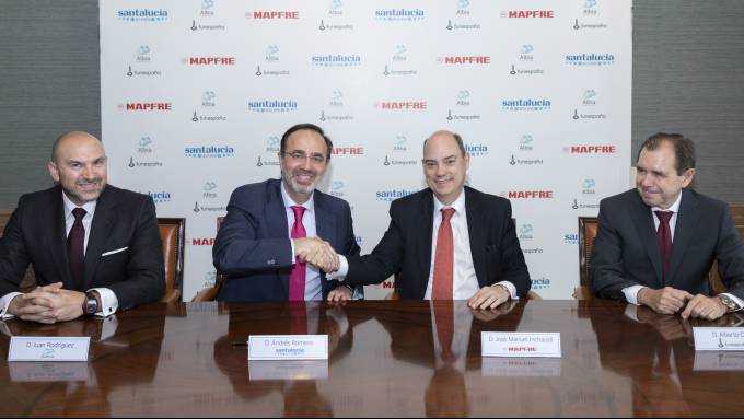 Mapfre y Santalucía han firmado una alianza estratégica para el desarrollo conjunto de sus respectivos negocios funerarios en España. Santalucía y Mapfre aportarán el negocio funerario que poseen en España: Albia y Funespaña, respectivamente. Detallan que el valor preliminar de los activos aportados a la alianza es de 322,5 millones de euros, pendiente de los ajustes finales a la fecha de cierre efectivo de la operación. Tras fijarse las valoraciones definitivas Mapfre, a través de Funespaña, poseerá un 25% del capital social y Santalucía el 75% restante, "para lo cual se producirá un pago en efectivo entre las partes por la cantidad necesaria para alcanzar el referido canje".