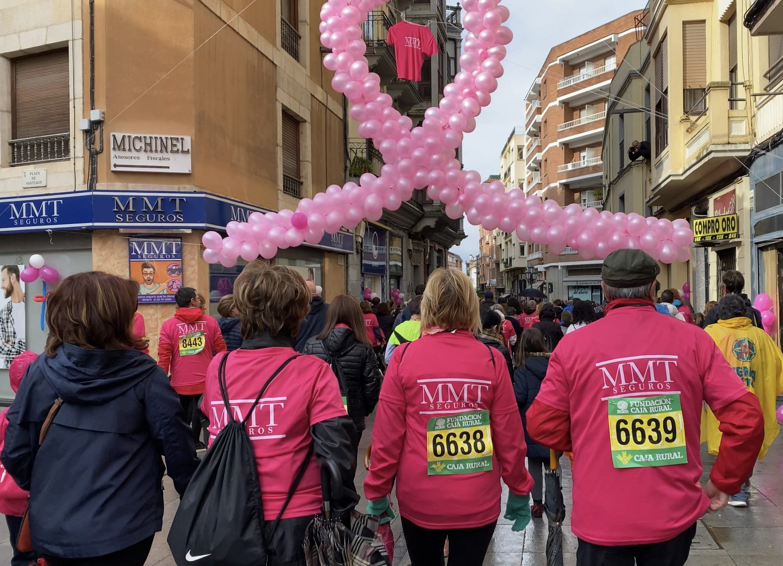MMT Seguros ha patrocinado la IX Carrera Solidaria 'Mucho x Vivir', en la que más de 10.200 personas han teñido de rosa las calles de Zamora. Todos los participantes han cruzado bajo el lazo rosa que la aseguradora instala a la altura de su oficina. Esta iniciativa sirve para recaudar fondos para la investigación y la lucha contra el cáncer de mama.
