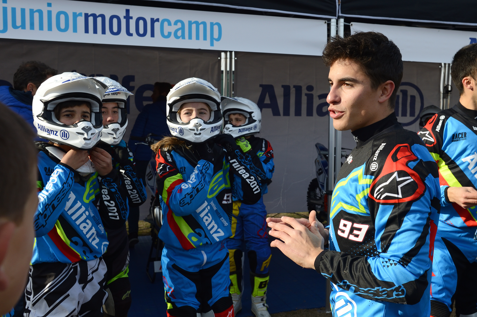 Marc Márquez presentó en el circuito de Rufea (Lleida) la III edición del Allianz Junior Motor Camp, junto a los 20 niños y niñas participantes. El mismo Marc Márquez fue el encargado de elegir a los 20 participantes de este campus de formación off-road. "Ésta es ya la tercera edición del Allianz Junior Motor Camp y tengo la misma ilusión que el primer día. Estoy encantado de volver a convertirme en profesor y poder transmitir lo que sé a estas veinte jóvenes promesas del motociclismo", ha explicado el piloto.