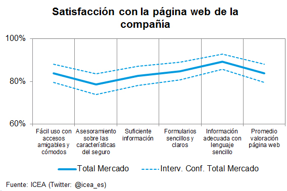 ICEA detalla que la valoración promedio de la página web de la entidad supera el 80% de clientes satisfechos, siendo la sencillez, bien en los accesos y uso de la misma, en los formularios solicitados o en el lenguaje utilizado, el atributo mejor valorado. En el lado contrario, el asegurado demanda un mayor asesoramiento de acuerdo a sus necesidades de contratación.