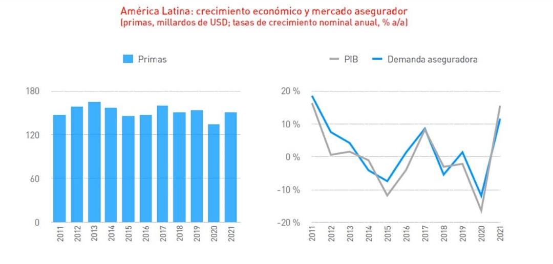 El mercado asegurador latinoamericano crece un 11,5% en 2021, aunque no alcanza el nivel prepandemia