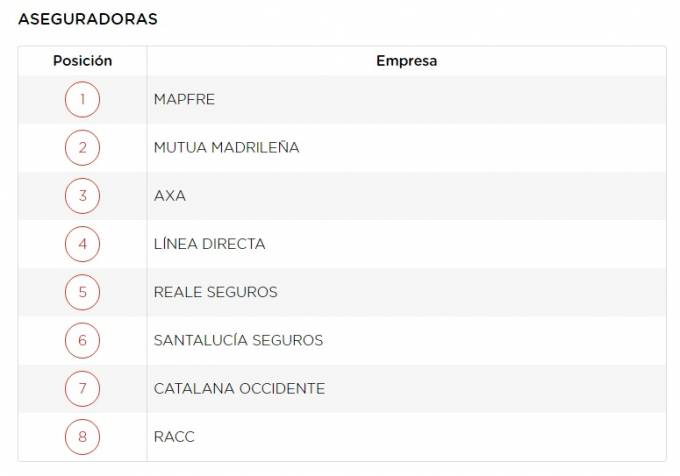 8 aseguradoras entre las 100 empresas españolas con mejor reputación