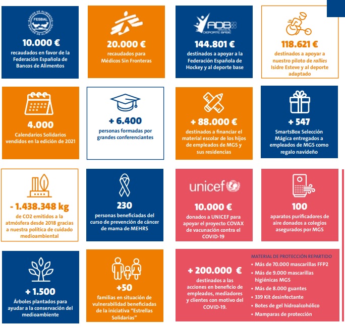 MGS Seguros y la Fundación MGS han publicado su Informe de Responsabilidad Social Corporativa (RSC) con todas las iniciativas desarrolladas en este ámbito durante el ejercicio 2021. La compañía y su Fundación han dedicado más de 1,46 millones de euros con alrededor de 50 actividades de RSC. Entre ellas destacan los más de 200.000 euros destinados a la protección de empleados, mediadores y clientes frente al Covid-19 o los 10.000 euros donados a UNICEF para apoyar el proyecto COVAX de vacunación.