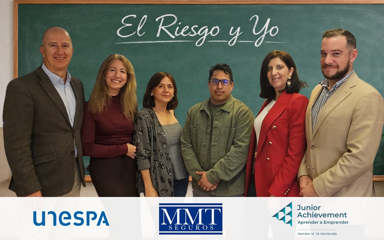 MMT Seguros ha participado un año más en la iniciativa 'El Riesgo y Yo', impulsada por Unespa y la Fundación Junior Achievement para fomentar la educación financiera y la cultura del riesgo entre jóvenes de entre 15 y 17 años. La aseguradora ha contado con la implicación de 8 voluntarios, que han contribuido activamente al desarrollo de las sesiones formativas, trasladando a los estudiantes la importancia de la prevención, la responsabilidad individual y la toma de decisiones informadas.