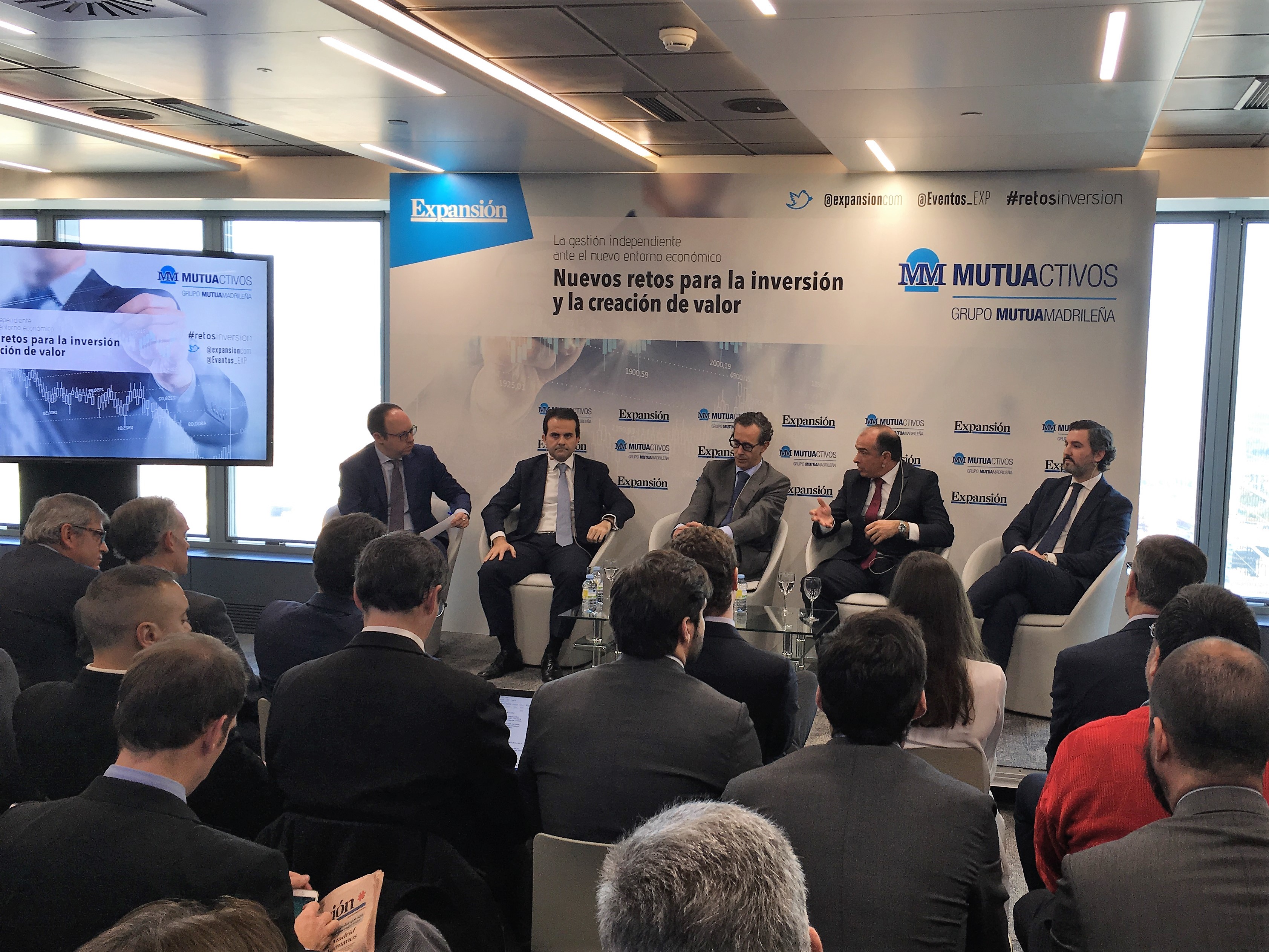 Más de 150 personas asistieron a la jornada Nuevos retos para la inversión y la creación de valor, organizada por Mutuactivos y Expansión. La inauguración corrió a cargo de Juan Aznar, presidente ejecutivo de Mutuactivos, quien hizo hincapié en la importancia de la gestión independiente. En su opinión, no existe un criterio único para definir la independencia en el ámbito de la gestión, una categoría en la que se pueden insertar tanto entidades cuyo capital está en manos de los socios ejecutivos como entidades sin redes de distribución cautiva. "El nexo común de todas ellas es la ausencia de conflictos de interés con el cliente y el hecho de que el futuro venga determinado por el mérito de nuestra gestión", señaló.